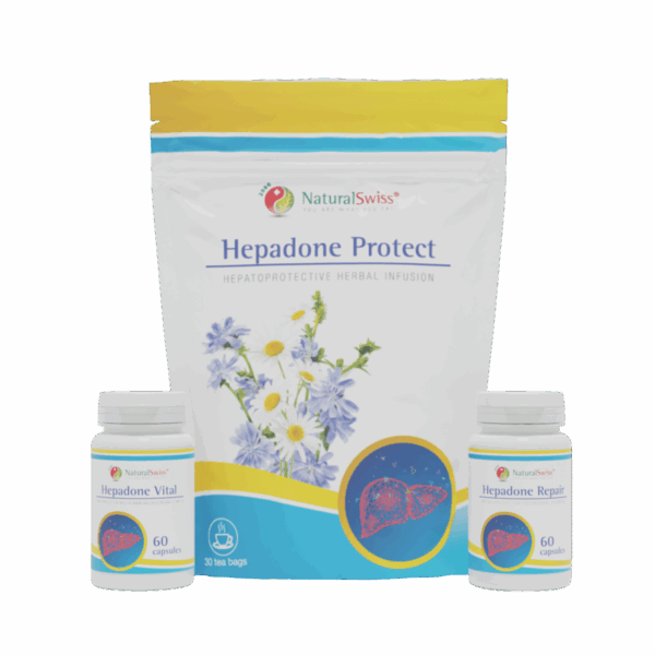 A termékcsalád összeállításánál célunk a máj működésének legszéleskörűbb támogatása volt. A programot alkotó termékek a hepatoprotektív gyógynövényeket tartalmazó Hepadone Repair kapszula, a megfelelő májműködéshez szükséges aminosavakat, vitaminokat és ásványi anyagokat tartalmazó Hepadone Vital kapszula és a gondosan összeválogatott, hatóanyagokban gazdag, természetes gyógynövények kombinációját tartalmazó Hepadone Protect gyógytea.